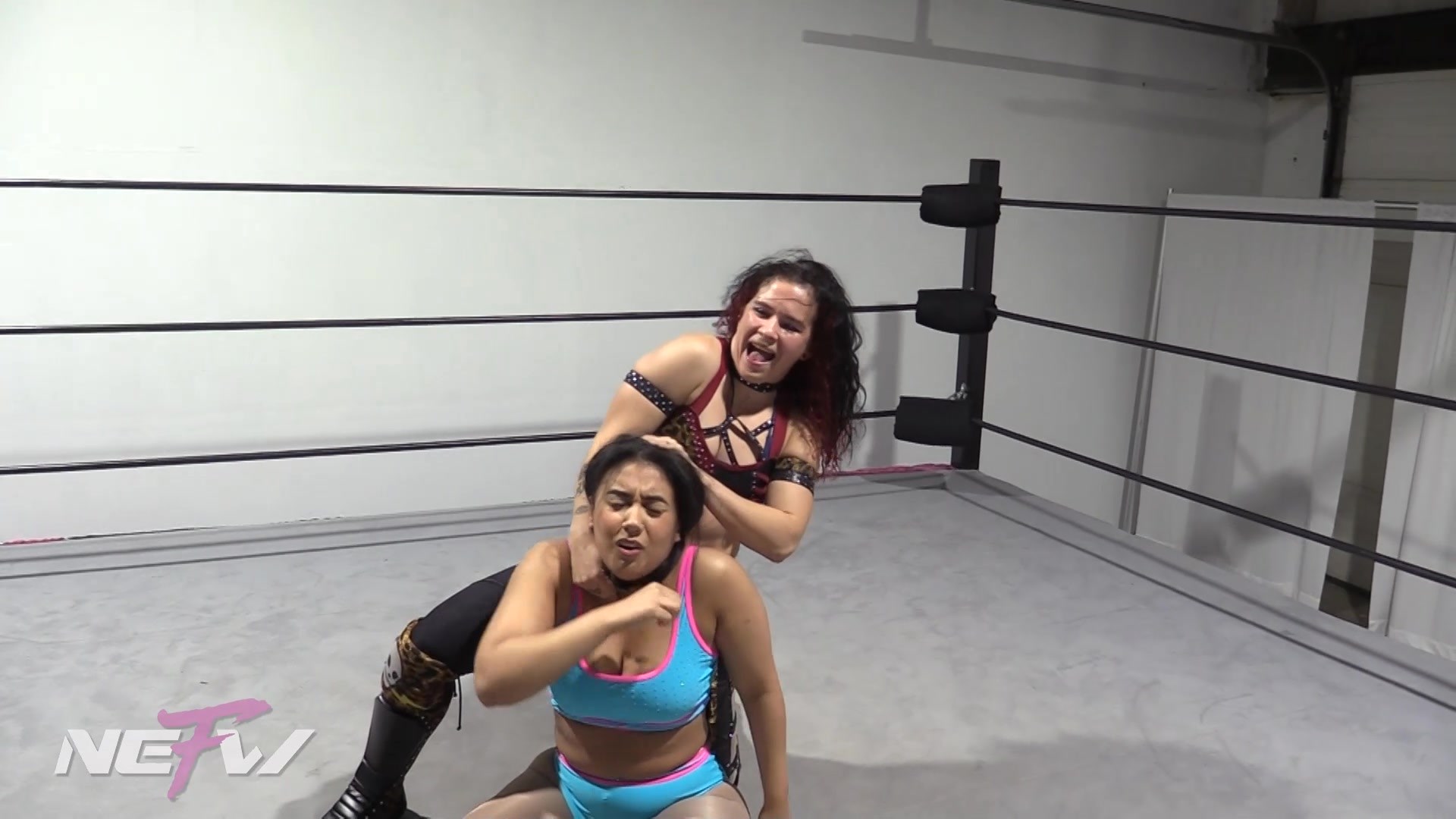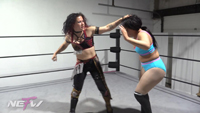 Kayla boasts about getting an easy win against a jobber today. Masha cuts her off, smirking as she tells Kayla she’s got bad news today, she’s the jobber. Masha boots Kayla in the stomach and immediately takes control, dragging her to the mat and cranking her neck with vicious intent. She pummels Kayla with stiff blows and stomps before twisting her into a painful leg lock, following up with a brutal knee DDT. Masha targets the leg relentlessly, taunting Kayla that it “should be broken.” She hauls her up for a crisp snap suplex, then cruelly grinds her boot into Kayla’s hair. Every time Kayla pleads for mercy, Masha answers with another stiff kick. Finally, Masha finishes her off with ruthless precision and hangs her limp opponent in the ropes, leaving Kayla broken and humiliated