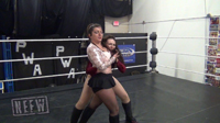 Alexis Rose and Jenny Rose clash in the War of the Roses. Prim and proper Alexis Rose talks a lot of trash despite her high-class English accent, and dishes out the punishment until Jenny resorts to pulling some of Alexis' long, black hair. Jenny has to show off her power to escape the Bow and Arrow hold, then looks for a way to break Alexis' arm!