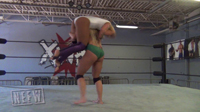 Solo backs Barbi into a buckle to break Barbi’s waist lock. Quick to show off her hot moves, Solo body slams and airplane spins Barbi for the five count cover! Barbi can’t lose that quickly though, so she proposes a best out of 3 falls match. Barbi beats down Solo with stomps and body slams. Solo is less pleased with this arrangement as she is airplane spun and covered for a five count! Barbi slams Solo head first into the buckle then chokes Solo on the top rope. Barefooted, Barbi kicks and stands on Solo’s back. With the odds 50/50, but Solo getting her back really worn in, who will win the next fall?! Click to watch!