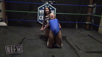 The tension is thick here between Penelope and Hania, already leading with claws out. Fierce lock up with neither giving up control till they break clean. Second lock up backs Penelope in a corner but a third try sends Hania around for a go behind. Penelope slips behind to reverse Hania. Neither staying long, Hania and Penelope trade hammer locks till Penelope is on the ropes getting her arms stretched on the top rope by Hania. Back in a headlock Penelope ends, getting taken over. Penelope shoves Hania’s head into her leg scissors but Hania rolls to find relief, floating into a sleeper hold. As Penelope fights out, Hania locks her legs around Penelope’s waist, squeezing tightly. The more Penelope struggles, the more Hania pulls her hair and tightens her grip. When it looks like Penelope is getting around, Hania locks a cross face on and Penelope loses the first fall. Just wait and see what’s next! Download here!