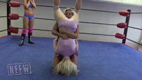 The fire is in who has a better body. Everyone feels they have the bigger booty, tighter quads and best upper body. Barbi comes in to mediate. The most efficient way to determine just who is the best is to take moves from Barbi and whomever does not get up, loses bragging rights. First move is Barbi’s driving knees into the midsection. Both girls struggle but get up, feisty and ready for more. Next is a corner attack. While this strikes hard, both girls ask for more. A classic maneuver, the camel clutch is up! Do these girls just enjoy pain?! Click to watch the competition.