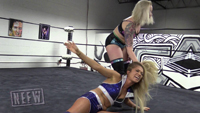 Who is the best in NEFW? Kimber and Alisha have different ideas on the topic. Kimber gets furious with Alisha’s defiance and gets right to work launching Alisha into buckles and from corner to corner by her hair. Pulling Alisha’s arms apart, Kimber demands Alisha says she is the best in the universe but Alisha doesn’t play ball. This only leads to Kimber dragging and stretching Alisha backwards by the hair. Kimber won’t take anything less as a suitable answer which means Kimber is taking matters to the ropes for some choking and some extremely painful hair pulling. Will Alisha pass out from pain or will Kimber not let her till she’s satisfied?