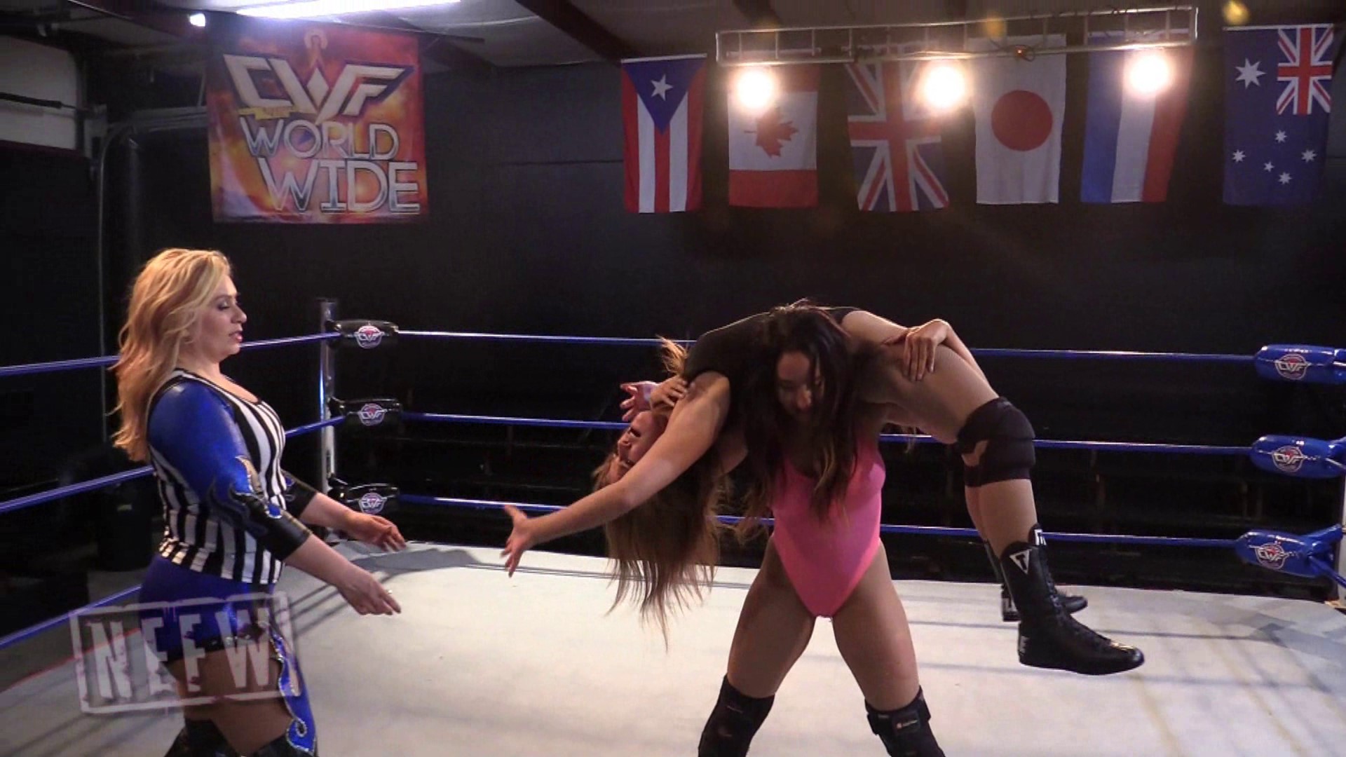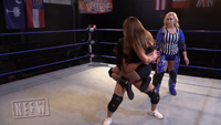 This is a best of 7 submissions only match between two fan favorites as Hania takes on Tesha Price, with Brandi Wine as the special referee. Submissions used include torture rack, figure four, crossface, bearhug, Indian deathlock and more. Intense action going back and forth the whole match long, you are definitely going to want this one if you are a fan of submissions.