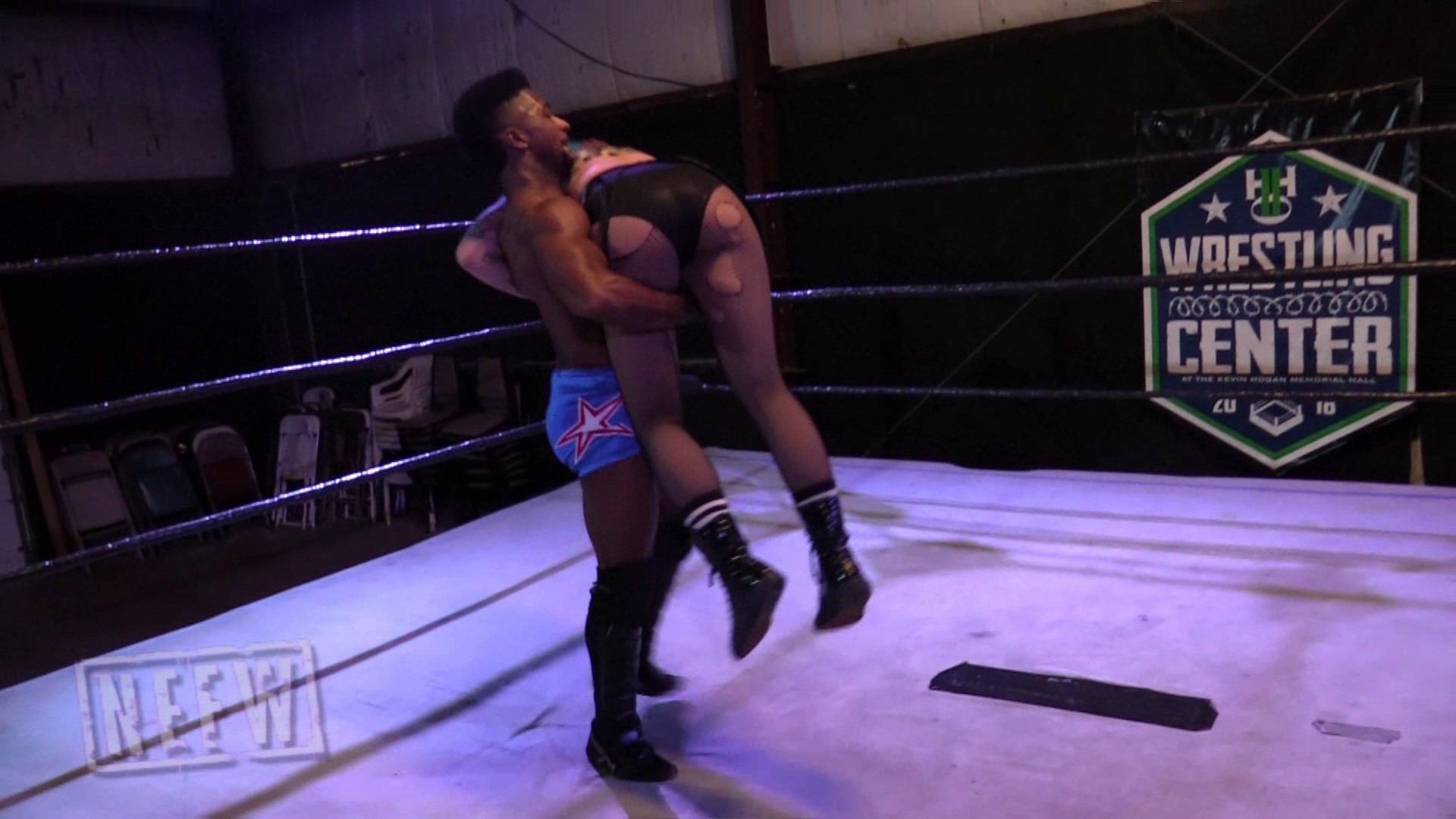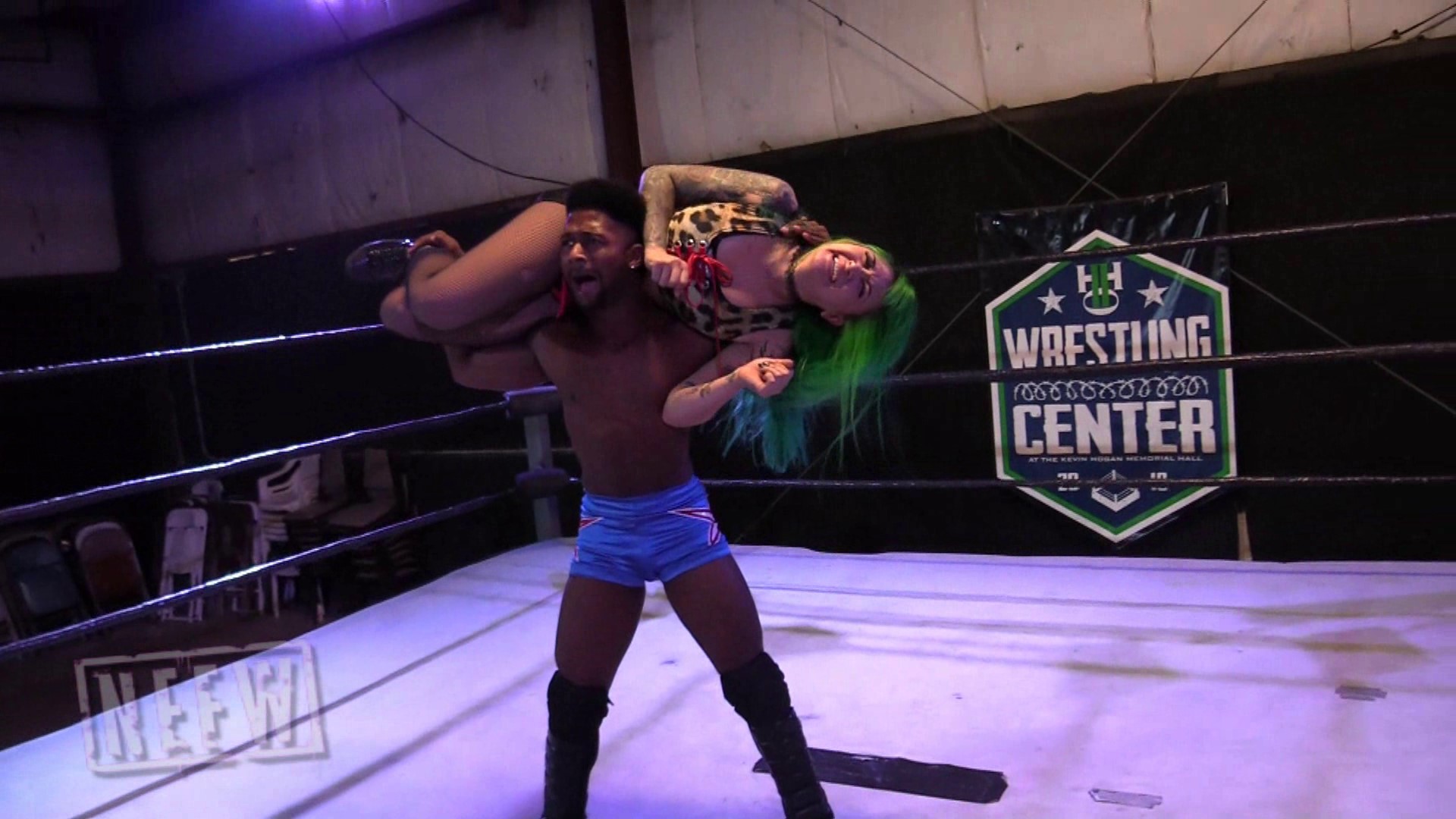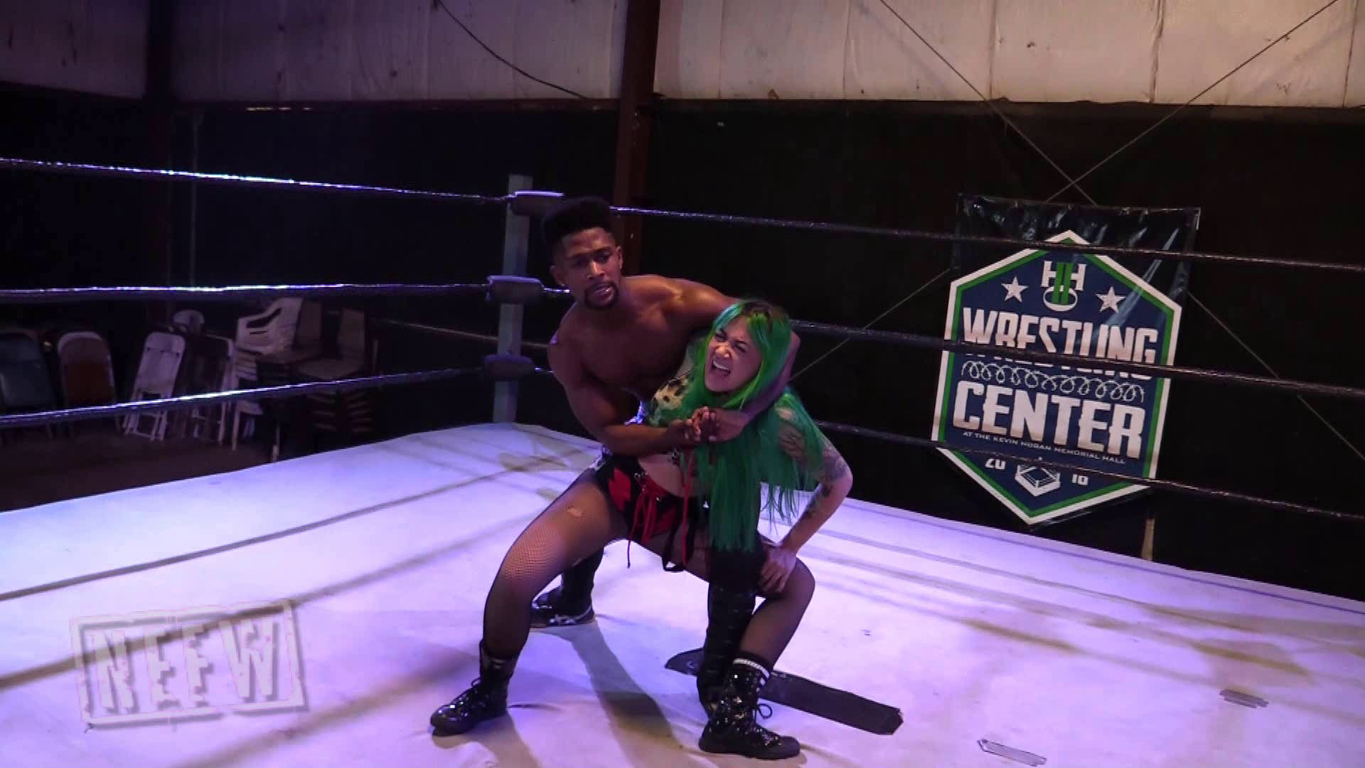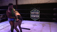 This intergender contest between Shotzi Blackheart and Anthony Bennett starts off with back and forth strikes and this looks like it is going to be a real barn burner. Anthony is able to take control after the start though hitting Shotzi with an ab stretch, multiple otk back breakers, camel clutch, torture rack, power slam, splashes and more. After Shotzi almost surprises him with a near fall roll up, he finisher her off with a bearhug followed up by another ab stretch that forces Shotzi to submit.