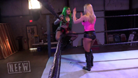 Both of these ladies are two of the hottest young stars in female wrestling, and both were leaving for greener pastures after this shoot, albeit different pastures, but had to run into each other several times in the ring in this shoot before their time at NEFW was over. Penelope gets the upper hand in their first battle here, dishing out the punishment in this squash match. The “Bad Girl” shows why she got that name by dominating Shotzi with multiple low blows, sleepers, chokes, a bronco buster and even a German suplex. Penelope eventually finishes Shotzi off with a stunner before leaving her laid out in the ring.