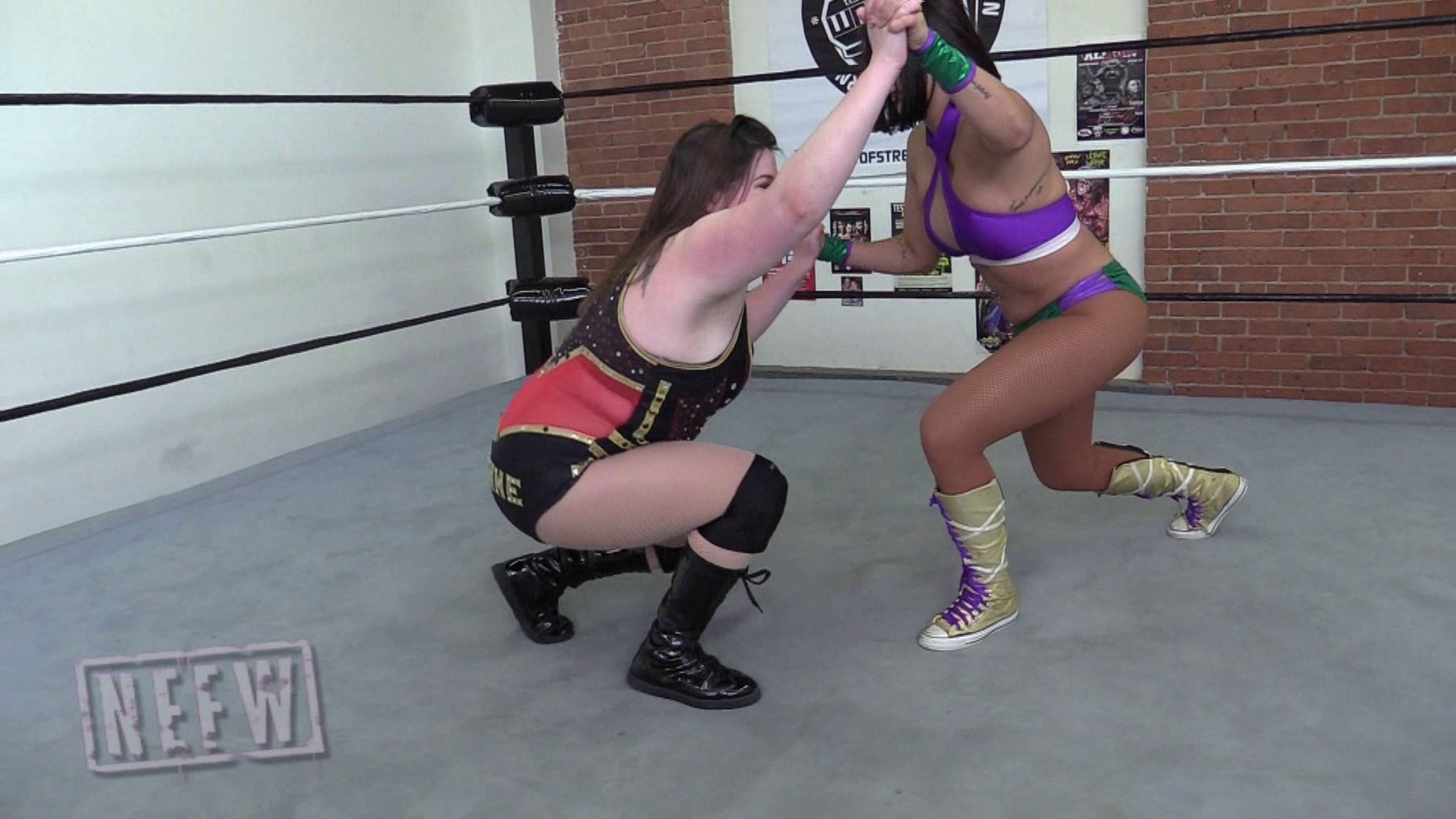 Gabi demands a rematch with Davienne after their last encounter and she gets off to a hot start, surprising Davienne by taking control with a test of strength. That control does not last long though as Davienne fights back and then proceeds to dominate Gabi in a low blow beat down. Gabi suffers for 20 minutes with all sorts of low blows, in the corners, uppercuts, stomps, knee spreader, kicks and more. Davienne even throws in a couple wedgies for good measure, as she takes Gabi apart.