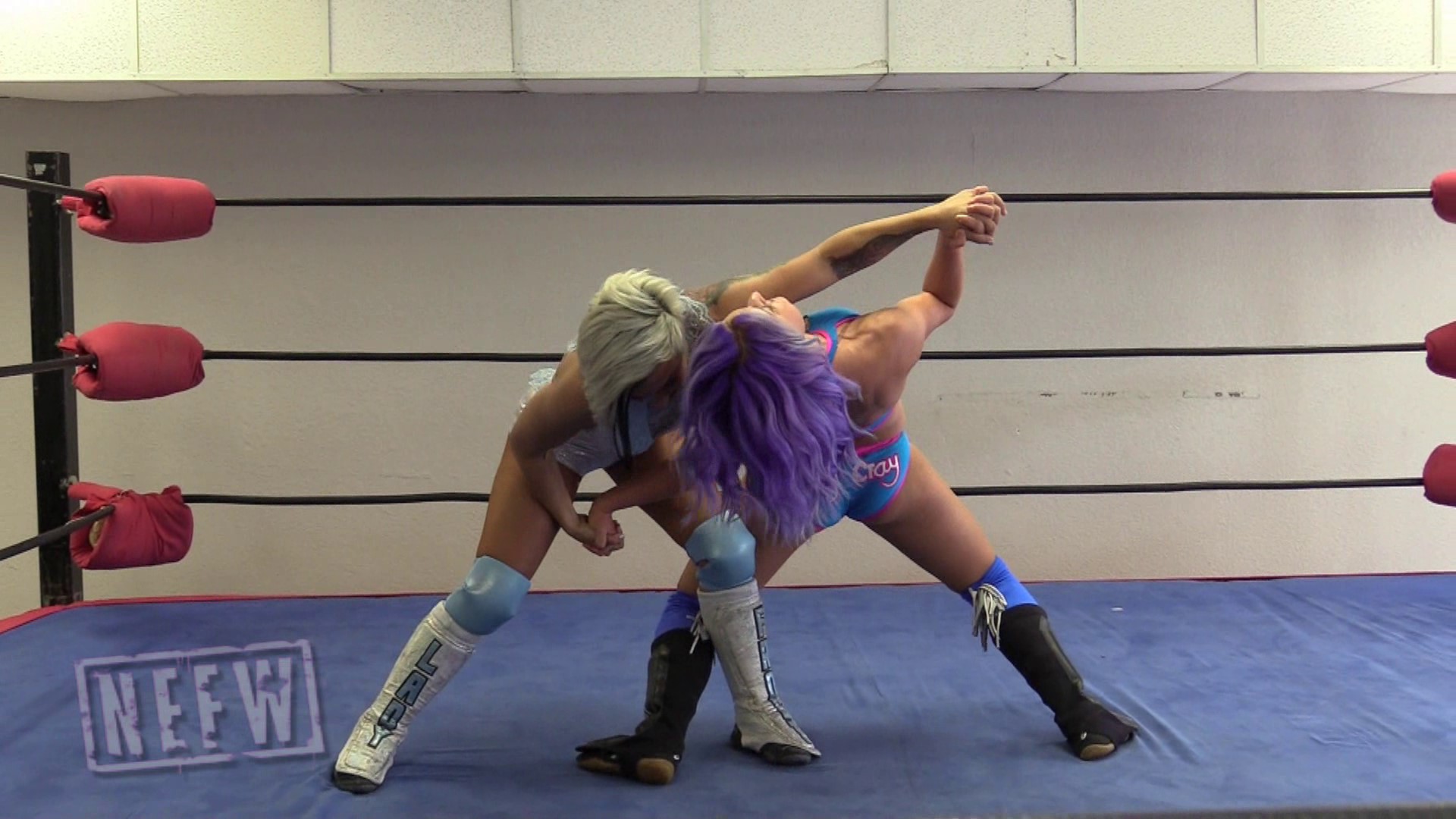 Ray Lyn and Lady Frost start out by saying they should be friends since they have so much in common, but quickly find out they have some issues with each other after all. They have a nice back and forth match, complete with test-of-strength, submission wrestling, and lots of trash talk. Ray lyn defeats Lady frost via kick to the head.