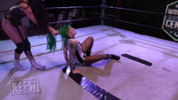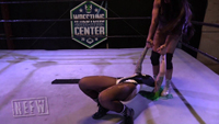 Shotzi is stretching after she just completed a match, when Sam enters the ring and demands a match with her. Shotzi says she not up for wrestling and tries to leave. Shotzi tries to exit the ring a couple times when Sam comes after her and starts delivering a beatdown to Shotzi. Sam drags Shotzi around the ring by her hair, tosses her across the ring with a handful of her hair, and completing this beatdown in a submission with a handful of Shotzi’s green hair.