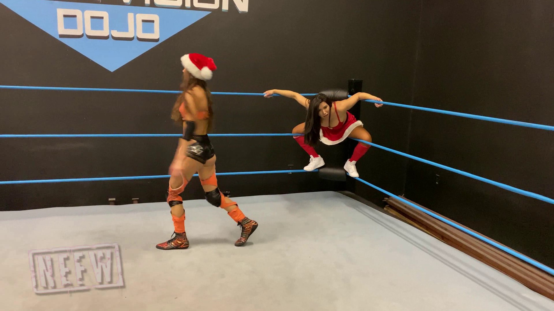 Gabi came dressed in full Christmas spirit, but Amber Nova was not having it at all. She sneaks up and hits Gabi with a low blow, kicking off a 20 minute long beating on the Brazilian beauty. Amber continuously mocks Gabi throughout the whole match, using a plethora of low blow attacks on Gabi. After the long beat down, Amber leaves Gabi in the middle of the ring, knocked out cold.