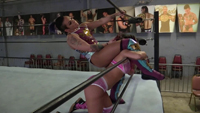 Alex is so very excited to be wrestling Solo, who she has looked up to since she was little. However, Alex makes the mistake of referring to Solo as older. It is one thing to compliment another worker, but Alex insinuates Solo used to be young. Solo isn’t having it and grabs a fist full of Alex’s hair, pulling her around, then snapping her back to the mat. Just wanting to teach Alex it isn’t polite to call a lady old, Solo hangs her thick thigh around Alex’s neck over the middle rope. Adding a little more punishment to Alex, Solo slams her head into the mat, locks her legs for double hook STF but grabs her hair instead. Stretch plum with a hair pull makes Alex scream in pain, begging for mercy…apologizing to Solo. When Solo feels she’s had enough, she let’s go. Solo leaves Alex laying flat out, aching.