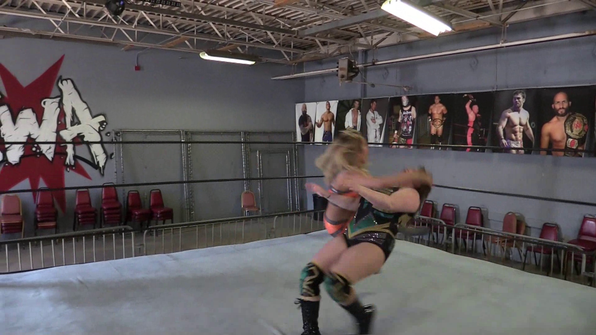 Alisha believes she can pin Davy for a ten count three times! These stipulations make Davy laugh so hard she agrees. Alisha takes advantage and gets Davy in a corner, choking her with her foot. While Alisha does listen to the ref, she goes back to the well a few times to ensure there is some damage done to Davy. Davy pulls herself out of the corner to the rope, but Alisha stomps on her over the bottom rope. After a devastating line off the momentum of Davy hitting the ropes, Alisha gets the first fall! Being experienced as she is, Alisha doesn’t let Davy breathe before capitalizing on Davy again with that nuclear clothesline. Two falls down, but will she get a third? Davy is struggling to get her power back because she isn’t let a second to breathe, a smart move by Alisha. Will she be able to smother Davy enough to get the last fall?!