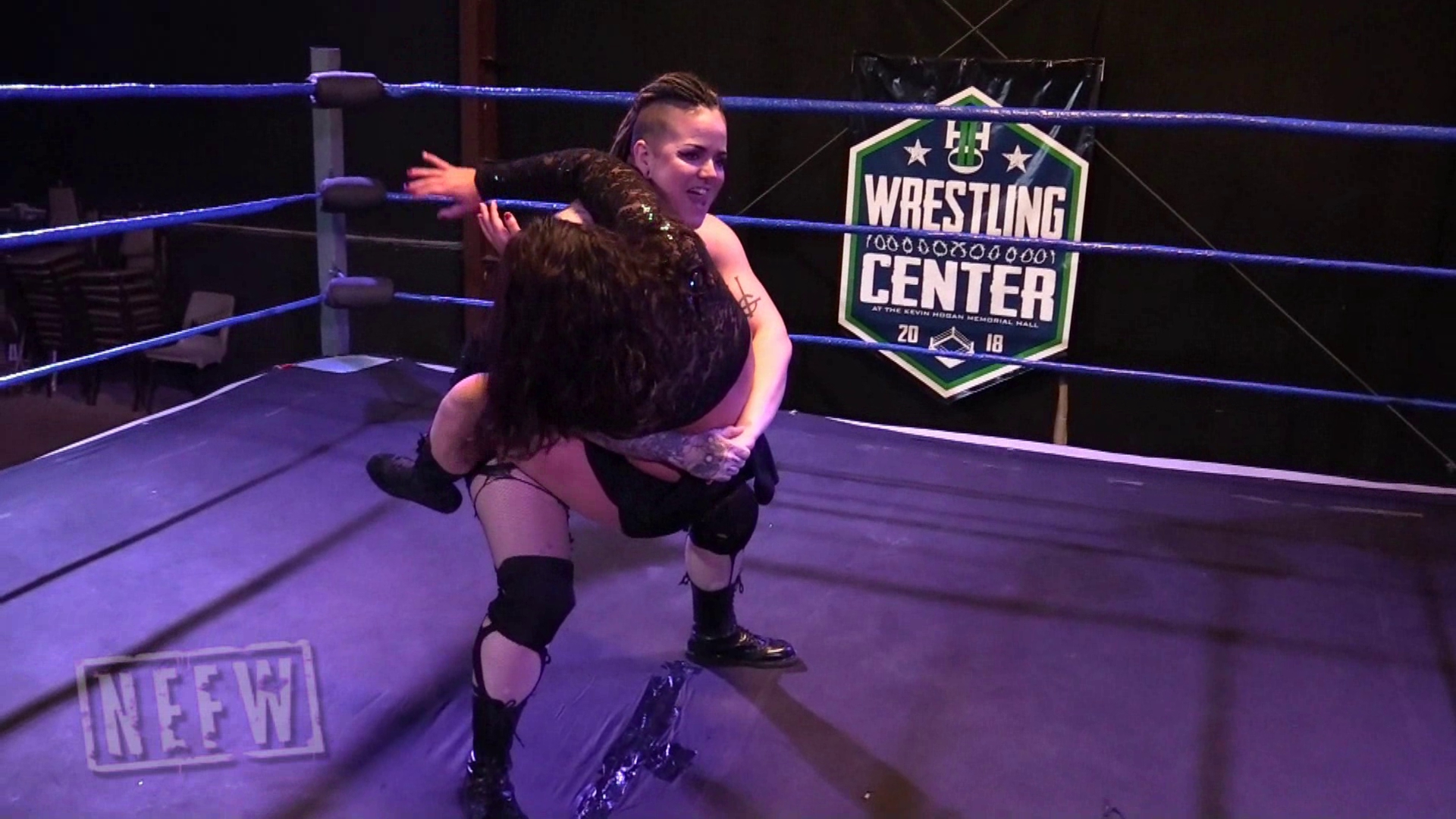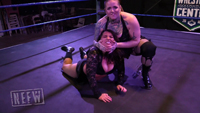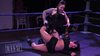 Max attacks Jenny right out of the gate! Max sends Jenny straight into the corner, giving her a shoulder to the gut! She continues to beat on Jenny using a stomach claw, chokes on the ropes, bear hug, body scissor, and finally finishes her off with a stalled body slam. Max pins the defeated Jenny, and leaves her laying knocked out in the ring.