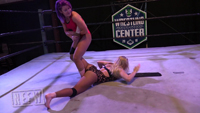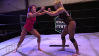 Both freshly pedicured ladies are ready to wrestle! In with a tight lock up, when Penelope reaches the ropes she breaks the hold and likewise, Raylyn plays fair. Double leg take down sends Raylyn to the mat and Penelope grabs her foot right away for an ankle lock. Following the pressure applied, RayLyn goes to her stomach to alleviate the pain and take Penelope down for a ride locking the ankle while laying across Penelope’s back. Penelope works to RayLyn’s head and Raylyn spins out to grab Penelope’s wrist and drop toe holds her. Get ready for things to take a turn for some aggressive feet heat when RayLyn starts playing dirty against the Bad Girl who has a number of saucy tricks up her stocking.