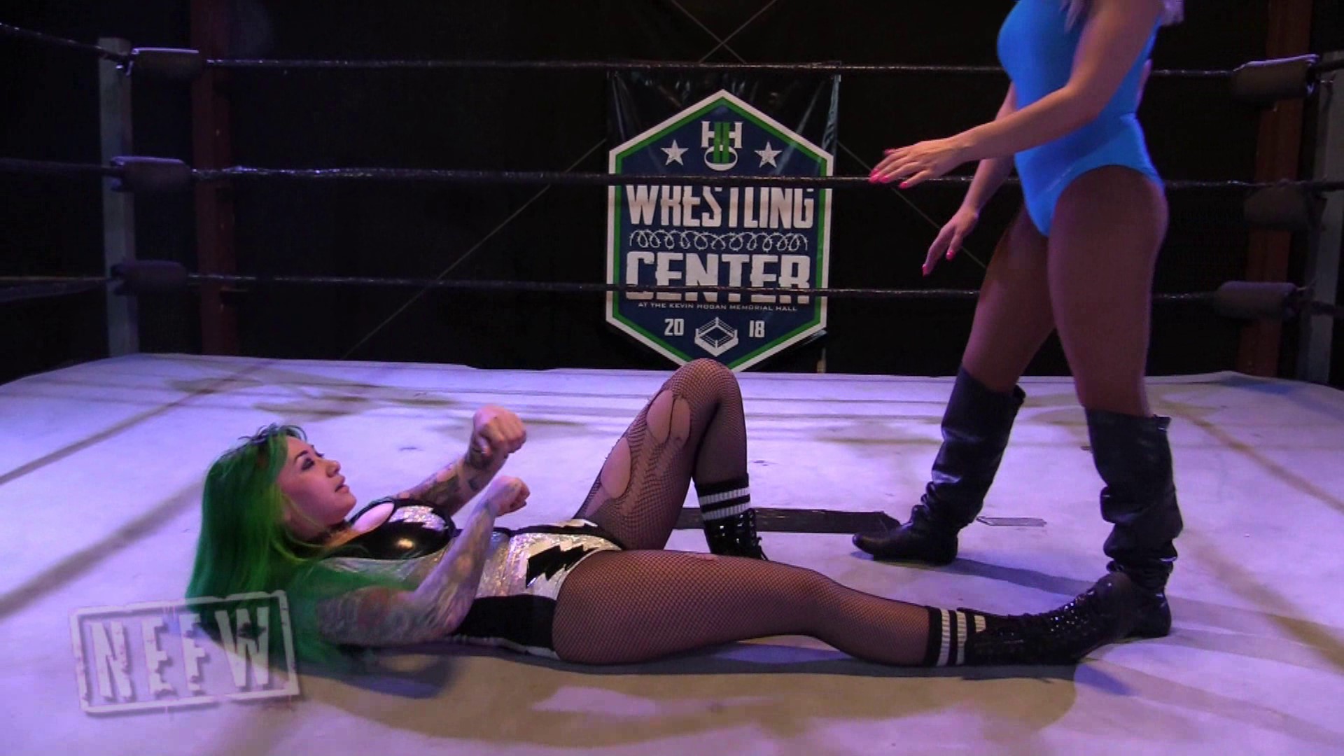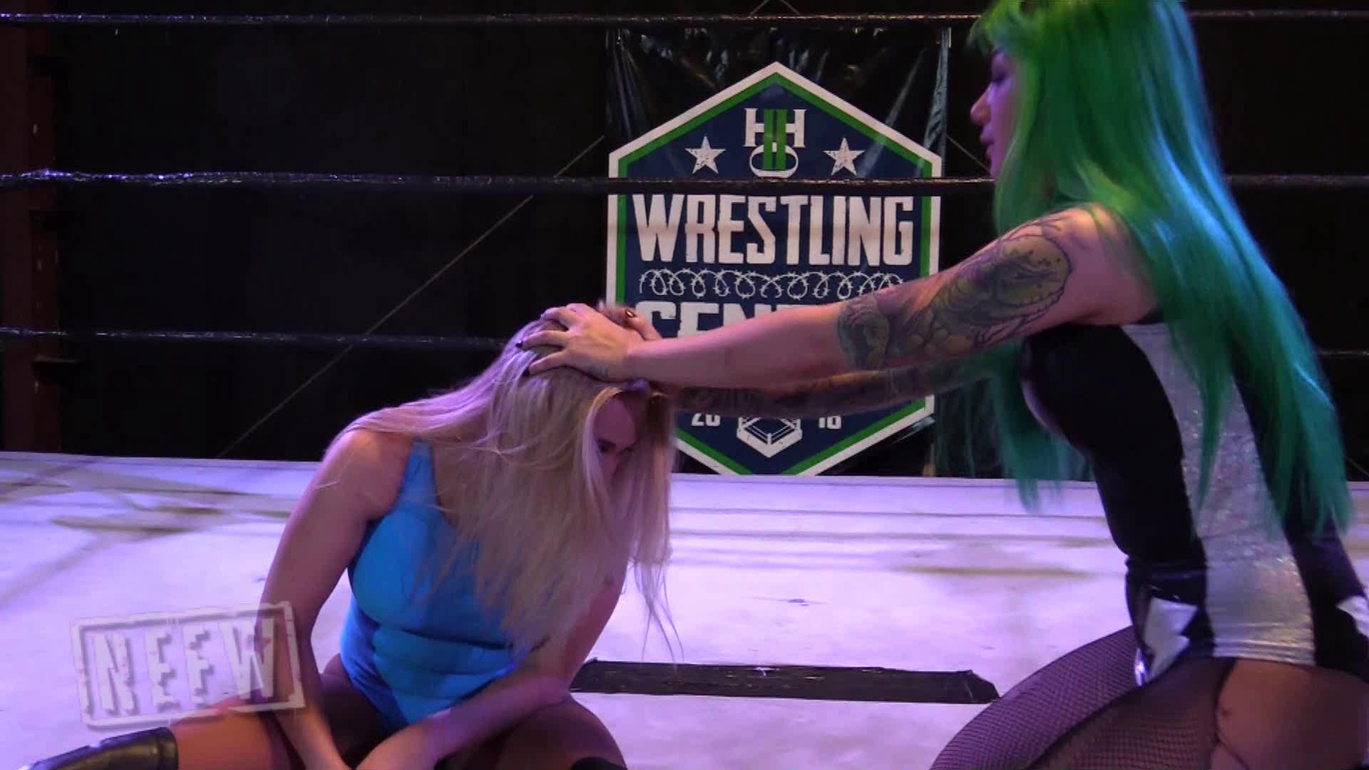 This is a knock out match taken to the next level. With direct strikes to the head, Shotzi makes Penelope incredibly dizzy. When she comes to she distracts Shozti for a return favor. Both girls sway and rock their heads with their eyes rolled back suffering the drunk feeling from head punches. Neither want to give up so they shake it off, less effective each time, take turns punching each other in the face. Staggering down, almost unconscious, then pulling each other up to try and continue fighting proves more difficult every second.