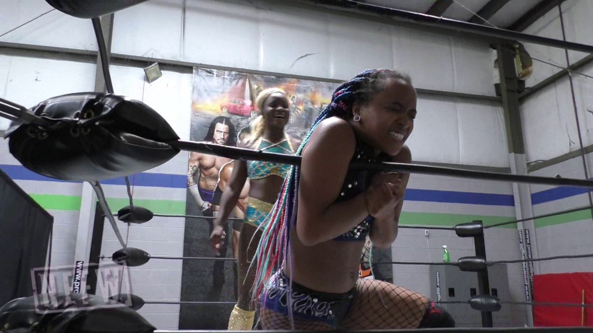 MJ wants to get this show on the road as she has places to be, but she needs to focus on her opponent in the ring, as Kiera Hogan is more than capable of taking MJ down. MJ tries using her size and strength advantage, but Kiera is prepared to give MJ all she can handle in this best 2 out of 3 falls match. Some moves featured are sleepers, body scissors, camel clutch, ab stretch and more.