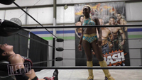 A surprise super kick knocks Diamante out right at the start of this match. MJ then proceeds to just dominate Diamante all match long, along the way locking her in several different scissor holds, wearing Diamante down. A final figure four head scissor has Diamante gasping for air until she passes out.