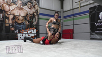 Deonna is standing in the ring claiming to be the most skilled wrestler to ever step into a NEFW ring and issues an open challenge. That challenge is accepted by Kaci Lennox, as Kaci says that she is not just going to beat Deonna but she is going to humiliate Deonna. But Deonna knocks Kaci down to the mat with a clothesline, and just dominates Kaci from there. Surfboards, camel clutch, figure four, step over toe hold, and neck breakers are just some of the moves that Deonna uses to wear Kaci down. And at the end Deonna finishes Kaci off with her patented Fujiwara Armbar that makes Kaci tap out.