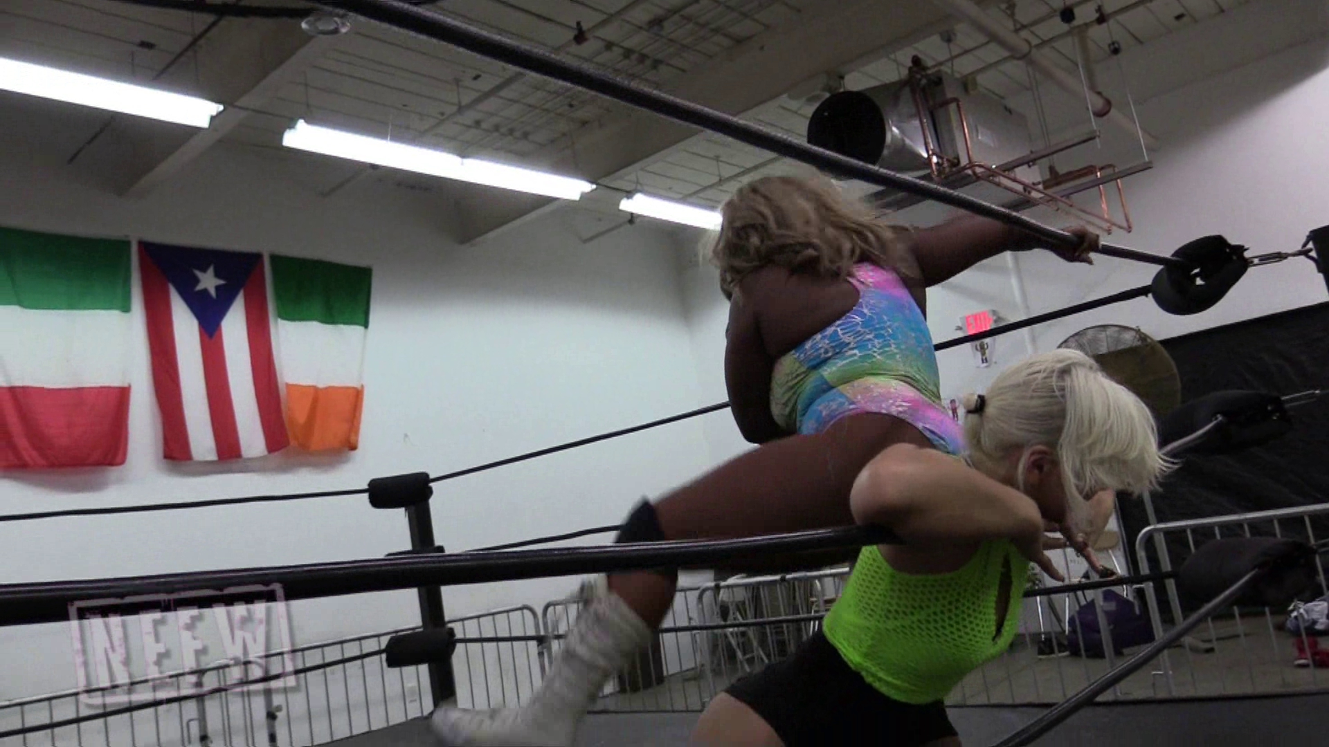 Lock up strong and Angel holds on. Latasha is very seasoned to Angel’s disadvantage and Latasha breaks out and lays in some strikes on Angel. Snap mare to a chin lock has Angel suffering but when she gets away, Latasha stomps Angel in the stomach hard. Latasha wants to make it so Angel can’t say a peep, rolling her to the outside, choking her on the ropes, kicking and punching her around like a rag doll. Angel has enough of this and fires up on Latasha but gets taken down to a figure four. Limping but not giving up, Angel fights up and throws herself at the corner to attack Latasha. Big trick from Latasha costs Angel some throat as she trips and lands herself on the middle rope, putting Latahsa in control again. Will the tides turn in favor of Angel? Stay tuned!
