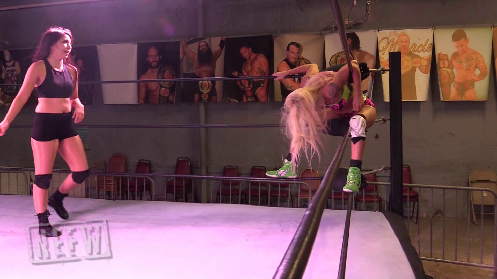 Violet enters the ring and see Dani Mo beaten on the mat. Violet decides to take advantage of this beaten girl and build up her win loss record, and starts a beat down on an already beaten Dani. Violet finishes off her beat down with a Single Leg Boston crab with a handful of her hair.