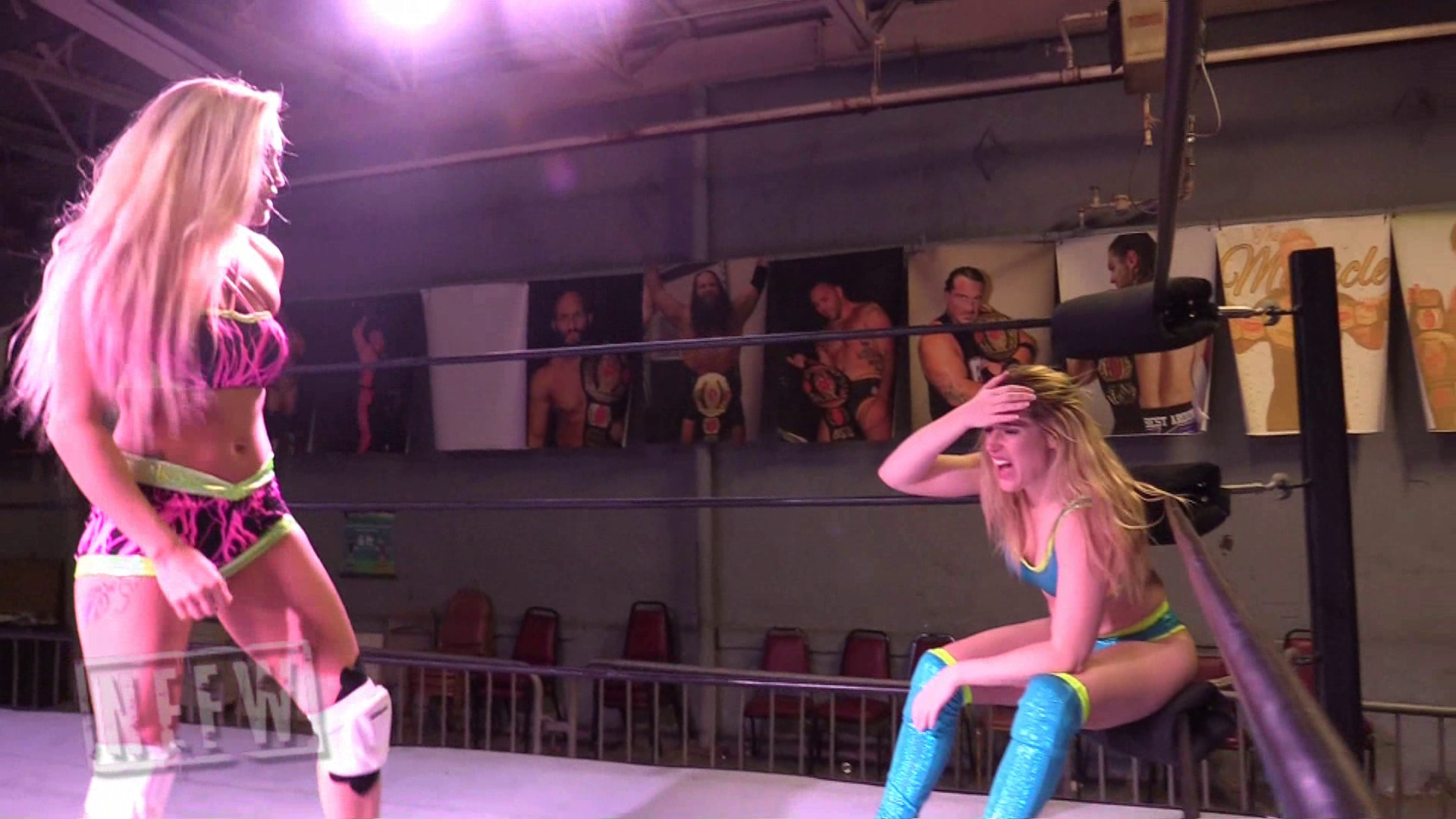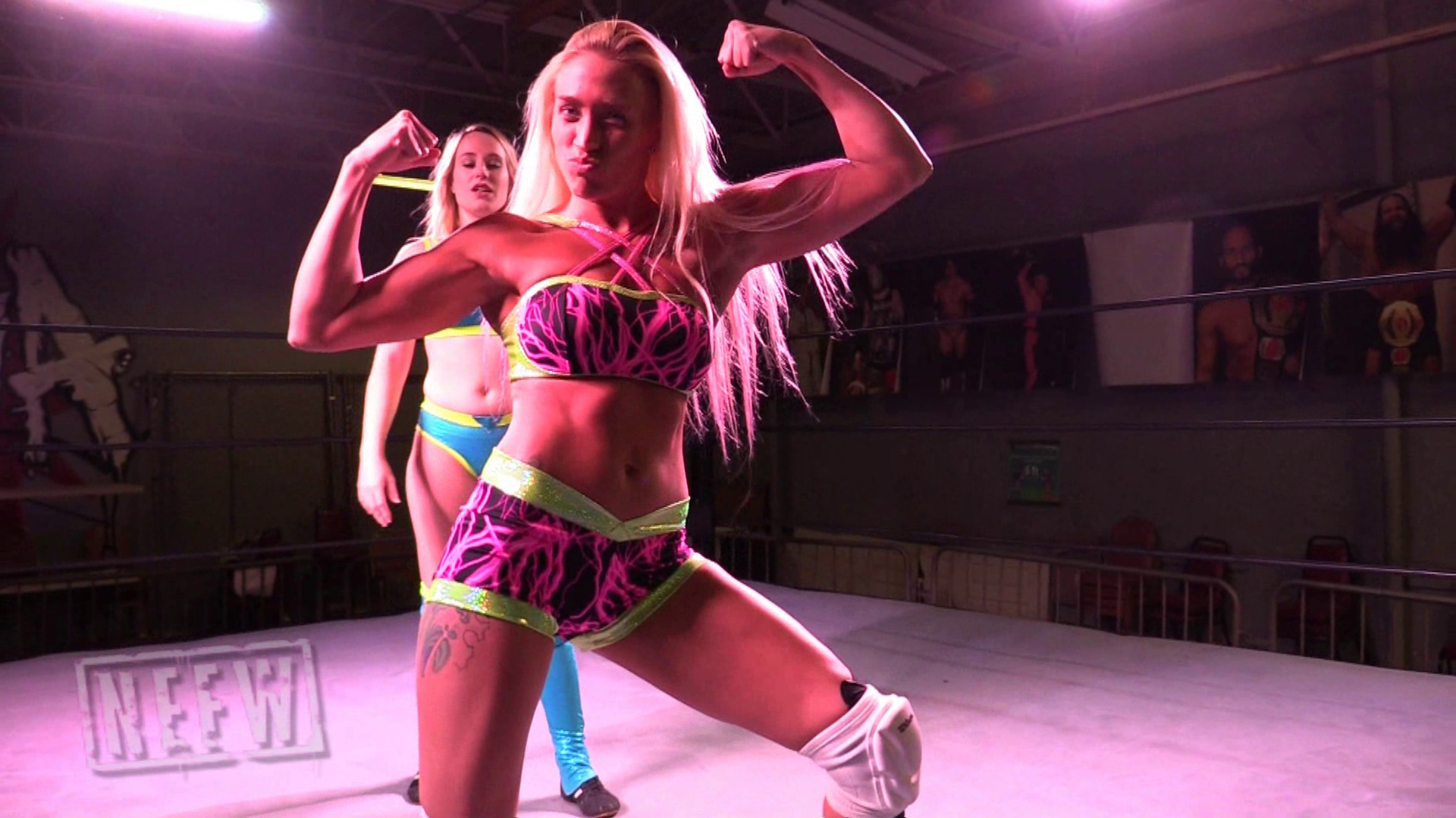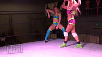Cece is showing off her muscles for her fans, when Dani Mo comes to interrupt! Dani wants to show off her muscles to Cece’s fans, but Cece’s not having it. Cece attacks Dani. The girls have a back and forth match, but Dani gets the win with her powerful finisher, all while showing off her muscles!