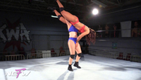 Violet is checking herself out in the mirror when Alyx Skyx comes to also try to use the mirror. Violet isn't willing to share the mirror with Alyx, so Alyx takes matters into her own hands and moves Violet completely out of the way. The girls decide to have a match and whoever gets 5 Bodyslams first is the winner of the match. The girls go back and forth giving each other Bodyslams trying to get to 5, but Alyx takes the win! Alyx doesn't stop there, she humiliates Violet even more by picking her up and Cradle Carrying her around the ring.