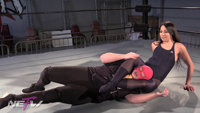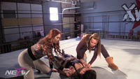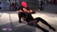 Violet is awaiting her opponent by the ring, as she is bragging about her legs in her new shiny tights. Violet's opponent is a new Russian wrestler and takes advantage of her, ticking this wrestler off! The Russian wrestler takes control of the match and begins to punish Violet. Violet has been beaten so badly some of the other wrestlers from the back run out to save her and help her to the back.