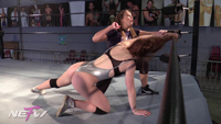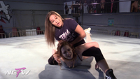 Tesha is annoyed in the ring waiting for her opponent who is extremely late for their match. Finally, Mimi emerges from the locker room, stating that she was busy fluffing her hair. Angered by this, Tesha attacks Mimi and begins to give a one-sided beat down with moves focusing on pulling her hair. Tesha completes this beatdown with knocking Mimi out via Camel Clutch/hair pull combo.