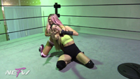 Chelsea and Alex meet in the ring and take no time to talk trash, they lock right up! Chelsea catches Alex in standing Sleeper Hold, but holds it until Alex is down on the mat and knocked out. She then begins to beat on Alex while she’s completely out by slamming her head against the turnbuckles. But when Chelsea takes too long trying to find an object to damage Alex, Alex wakes up and the battle begins. After the girls use various objects to assist in their knockouts, Chelsea is the winner leaving Alex knocked out in a chair.
