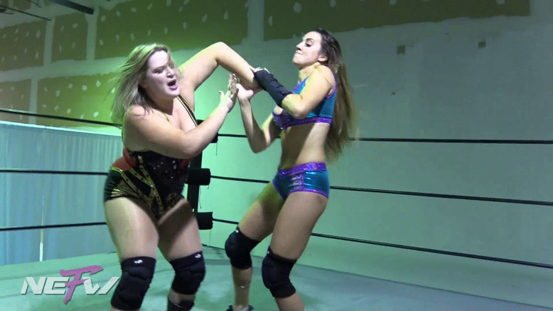 Chelsea is stretching in the ring when Davienne enters, and is very excited to meet her! Davienne asks if Chelsea would help her with her wrestling, and Chelsea agrees to do some training with her. As Davienne is “learning” she finds a chance and kicks Chelsea in the gut and roles her up into a pin and counts to 3. The girls decide to have a real match, and they lock up. Davienne completely demolishes Chelsea and pins her for a 10 count pin.