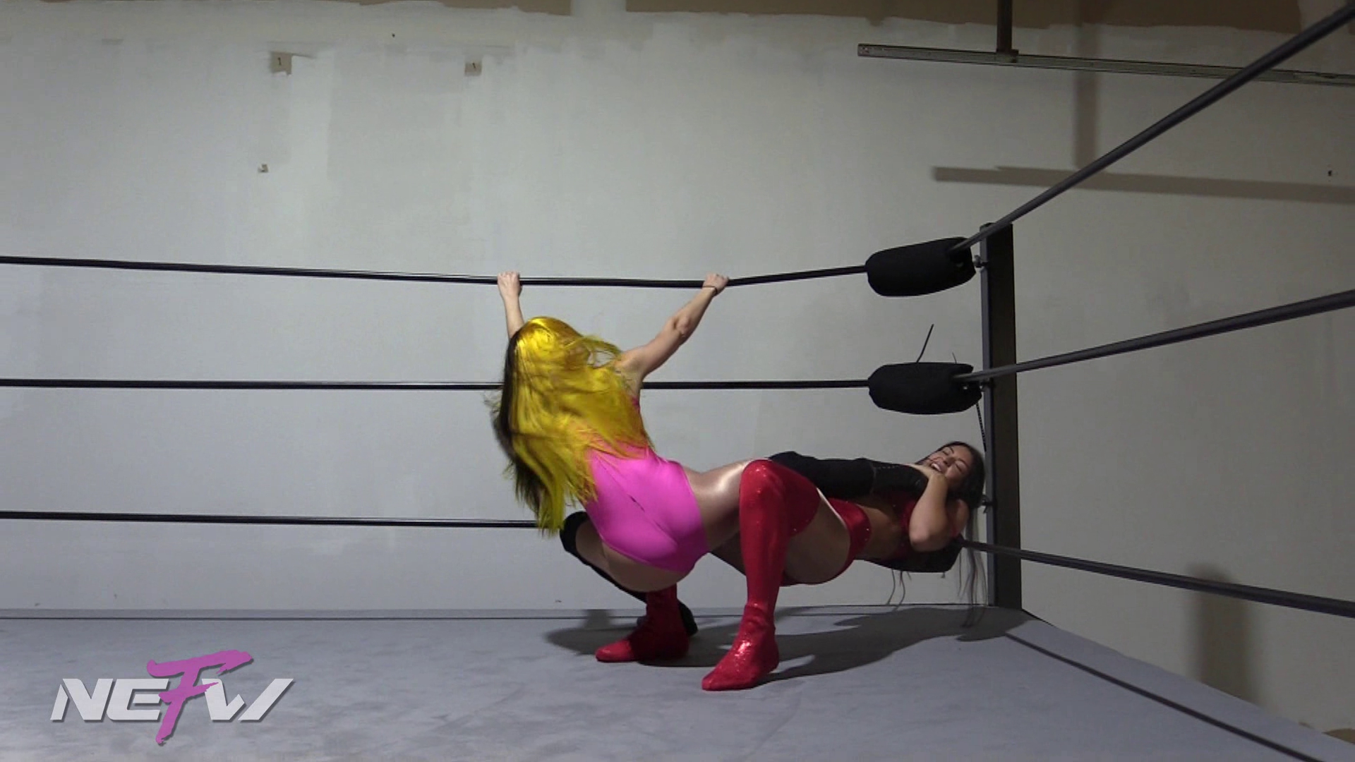 Ava has a plan to beat the stronger girls in NEFW, and it’s to gather as many Pretty Petite girl she can, and form a club! When she offers a spot to Kellie to be a part of the group, Kellie declines, because she thinks she’s strong enough to be on her own. This annoys Ava causing her to attack Kellie, and begin a beatdown on Kellie. Ava tosses Kelie around the ring by her hair, pulling her hair, and wrapping it around the ropes. Ava finishes off her beatdown to Kellie by putting her in a Single Leg Boston Crab, and a fist full of her hair!