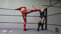 Aspyn and Kellie are all set to battle as they have a strong and long lock up. As the girls lock up again Kellie takes control and slaps on a Ab Stretch, really pulling on Asypn’s midsection. The girls stay competitive until the end using Sleeper Holds, Chokes, and Body Scissors. Kellie is able to get the win, leaving Aspyn knocked out on the mat!
