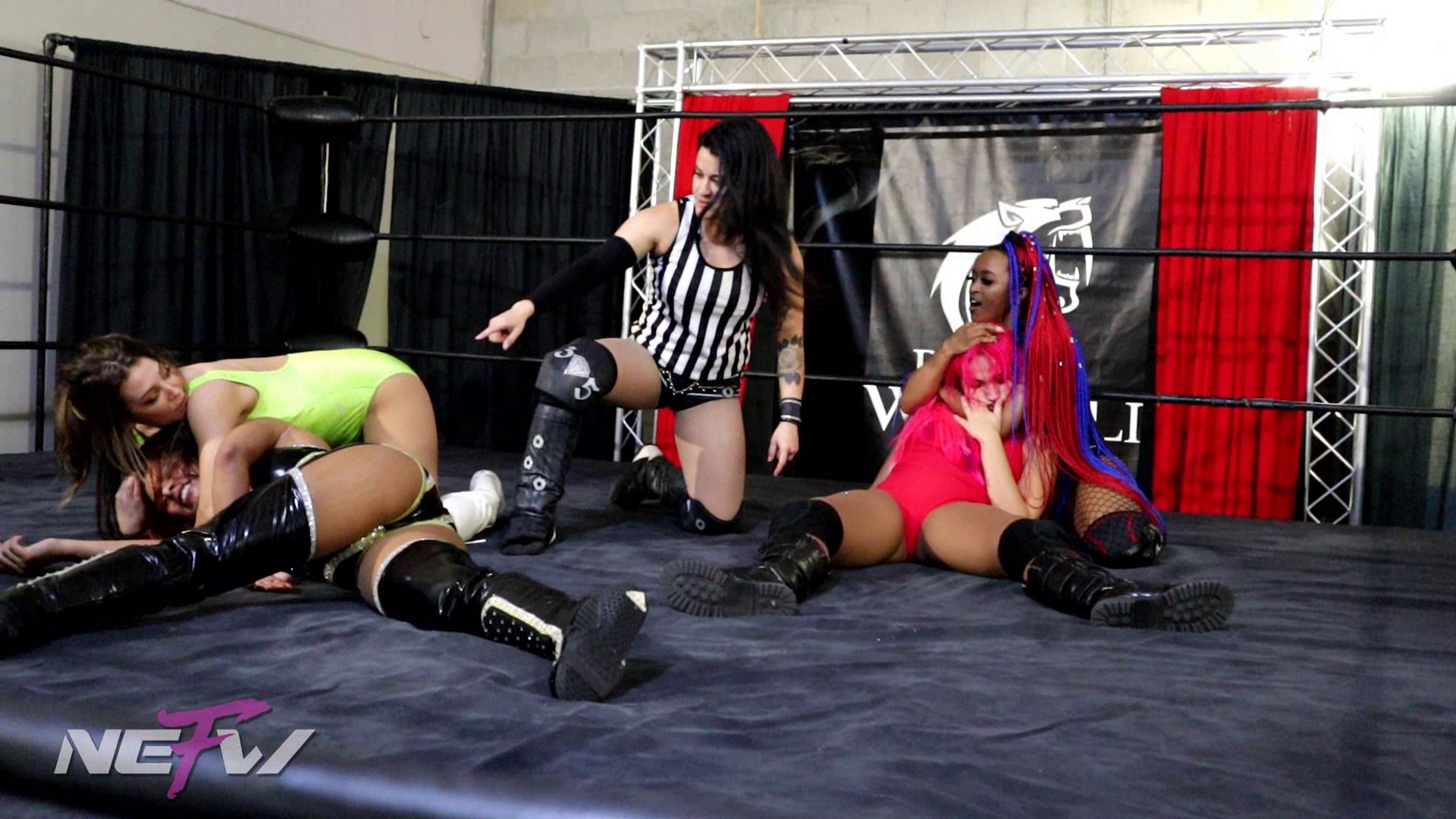 We have Tag Team action: the team of Kiera Hogan & Madi Maxx vs Renee Michelle & Salina de la Renta. As per usual tag team matches the girls start off with lots of trash talk, but as the teams go back and forth tagging in and out battling for the win, the team of Madi and Kiera comes out ahead as the team both slaps on Sleeper Holds to Renee and Salina, taking the win.