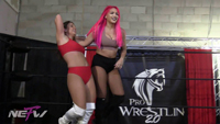 Madi Maxx is introducing herself to the camera when Salina attacks her from behind and gives her a brutal Pile Driver! Salna continues to punish Madi with various submission holds, tossing her around the ring by her hair, Sleeper Hold, Foot Chokes, and finishes her off with multiple Pile Drivers. Madi is left in the ring, completely knocked out.