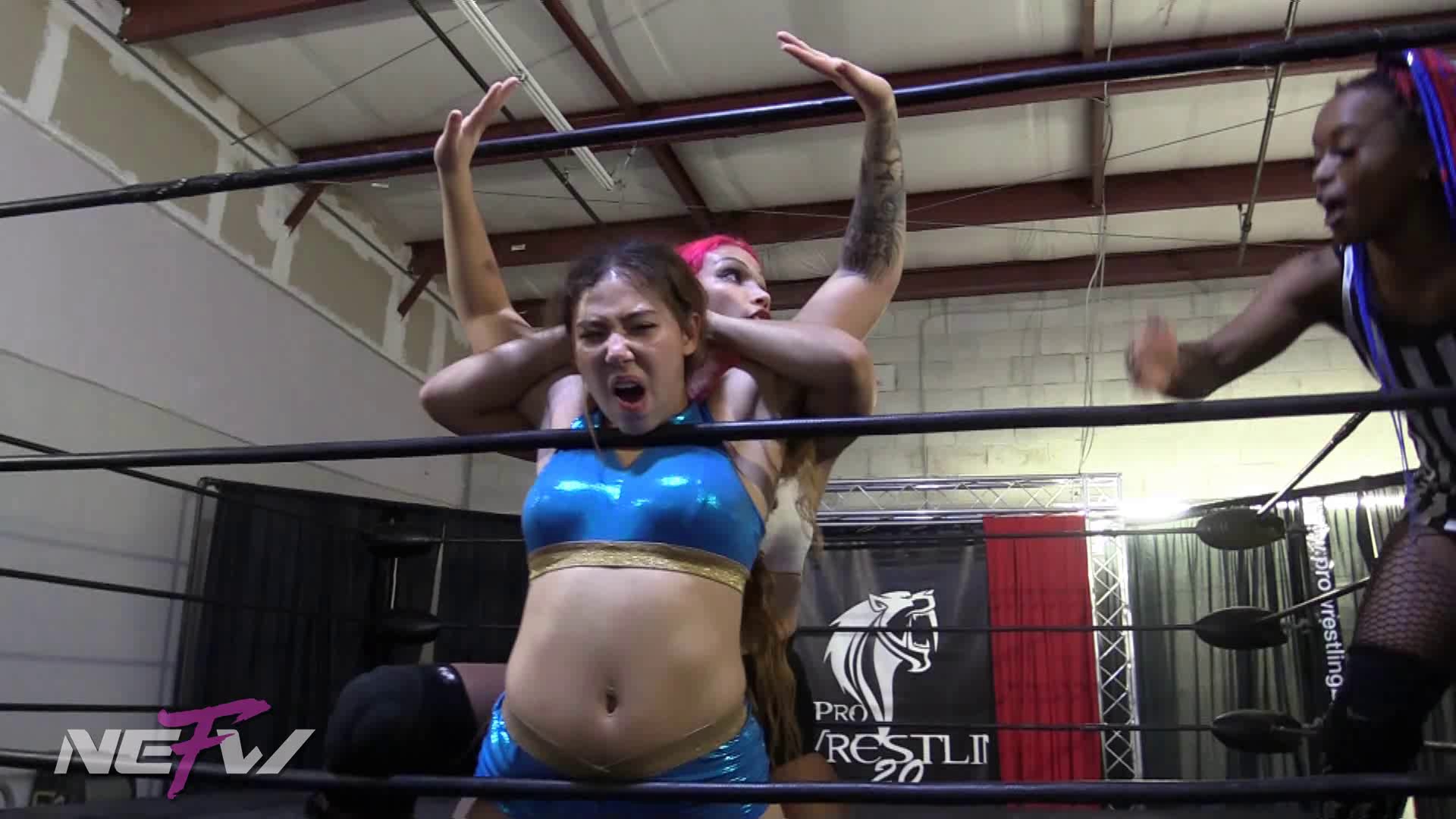 In true Salina de la Renta fashion she enters the ring talking trash to her opponent Kiah Dream. As the two banter back and forth the referee urges them to start the match. AS the girls lock up Salina takes control and puts Kiah in holds like Ab Stretch, Boston Crab, and Ankle Lock. Salina, clearly on top in this match goes to finish Kiah with a Leg Lock, but when the referee said she won the match and to release the hold, Salina ignores the referee. In the end the referee reverses her decision and makes Kiah the winner when Salina won’t stop the hold.