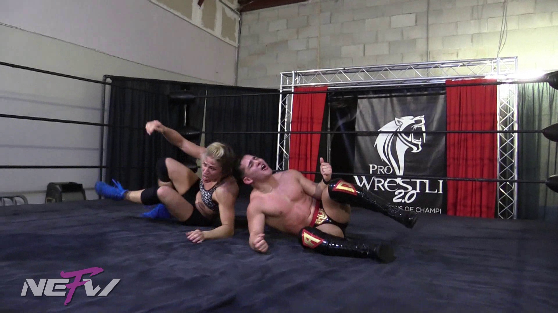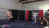 Marina is in the ring stretching when Ariel runs up behind her and kicks her in the crotch. He continues to torment her with Atomic Drop, after Atomic Drop. After numerous crotch attacks from Ariel, Marina finds the strength to fight back and delivers a Suplex, followed by a really snug Arm Bar, teaching her attacker not to mess with her.