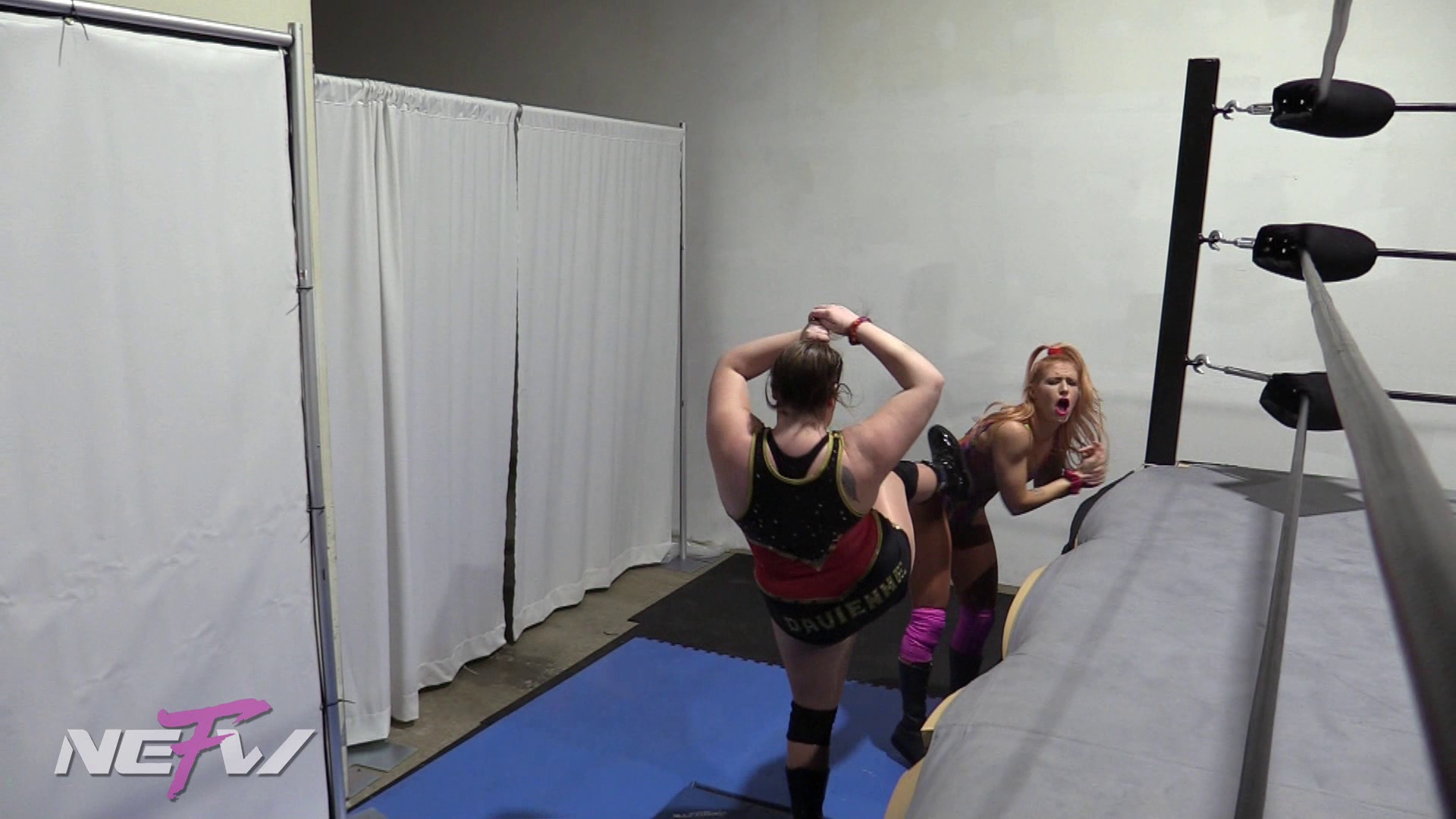 Becca is making her entrance when Davienne attacks her from behind. The attack is so brutal that Becca tumbles to the outside of the ring where Davienne continues to beat on Becca using ringside objects. Once back in the ring, Davienne continues this beat down with multiple Bear Hugs; however Becca is able to power up and break out of these strong Bear Hugs. Becca slaps on a Camel Clutch, and teaches Davienne not to mess with her anymore.