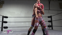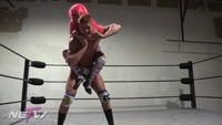Gal is stretching in the ring when Alex Gracia races up behind him, jumps on him, and slaps on an elevated Sleeper Hold! She's able to hang on for a while, but when he gets his hands on her he gives her a Bear Hug. The two go back and forth with moves and holds like Kicks to the head, Rear Naked Choke, and Bear Hugs. In the end the male wins this match and Cradle Carries Alex to the locker room.