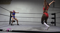 Lady Bird is doing sit ups in the ring when Ray Lyn enters the ring applauding her workout. The girls start to banter about who has the better abs, and things get heated. The girls go back and forth trying to prove who the stronger of the two are trading moves and holds like Bear Hug, Grapevine, Ab Stretch, and Figure Four Leg Lock. In the end, Lady Bird takes the win with a Bear Hug and Grapevine pin.