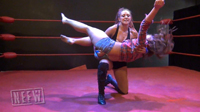 Desi is carrying Allie, walking around with her and slamming her in the post outside the ring. When she is ready she rolls Allie in the ring and starts stretching her. Desi picks Allie up and body slams her. Comfortable holding Allie, Desi slams her into buckles but keeps a hold of her. A backbreaker for Allie sends her crying in pain. Desi is able to squat Allie, so it is going to take a lot of fire from Allie to get out of being held and slammed down. A modified torture rack sends Allie screaming in agony. With Desi fully in control, how will Allie survive? Allie tries to pull herself together but Desi puts a sleeper hold on Allie that does just the trick. Typically this is the end of a match, but Desi isn’t done yet. Click to see what awaits Allie and her bare feet.