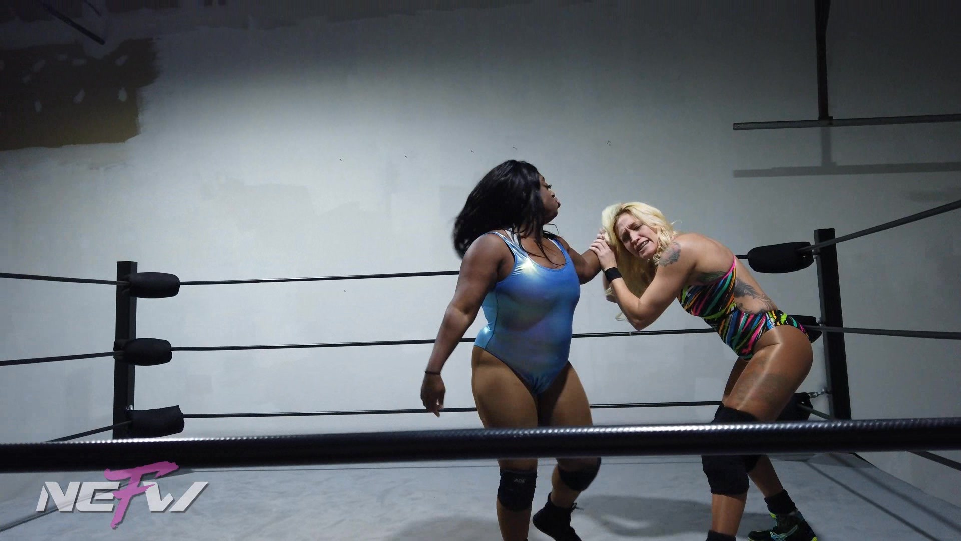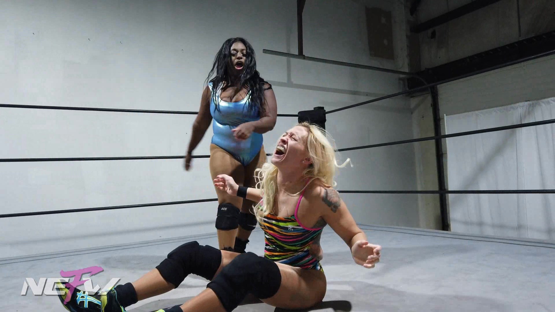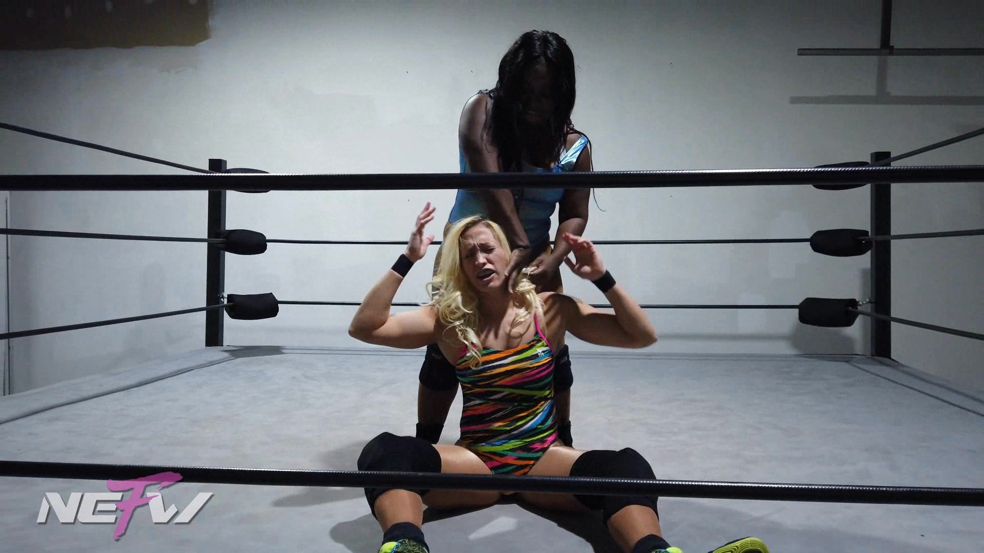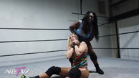Dani Mo is in the ring stretching out when Latasha attacks her out of nowhere! Latasha tries to teach Dani that blondes don't make it in pro wrestling, and she should quit now. Latasha focuses on moves and holds where she rips, yanks, and pulls on Danis luscious long blonde hair. Latasha finishes off her beat down with a Single Leg Boston Crab, and a fist full of Dani’s hair, causing Dani to submit.