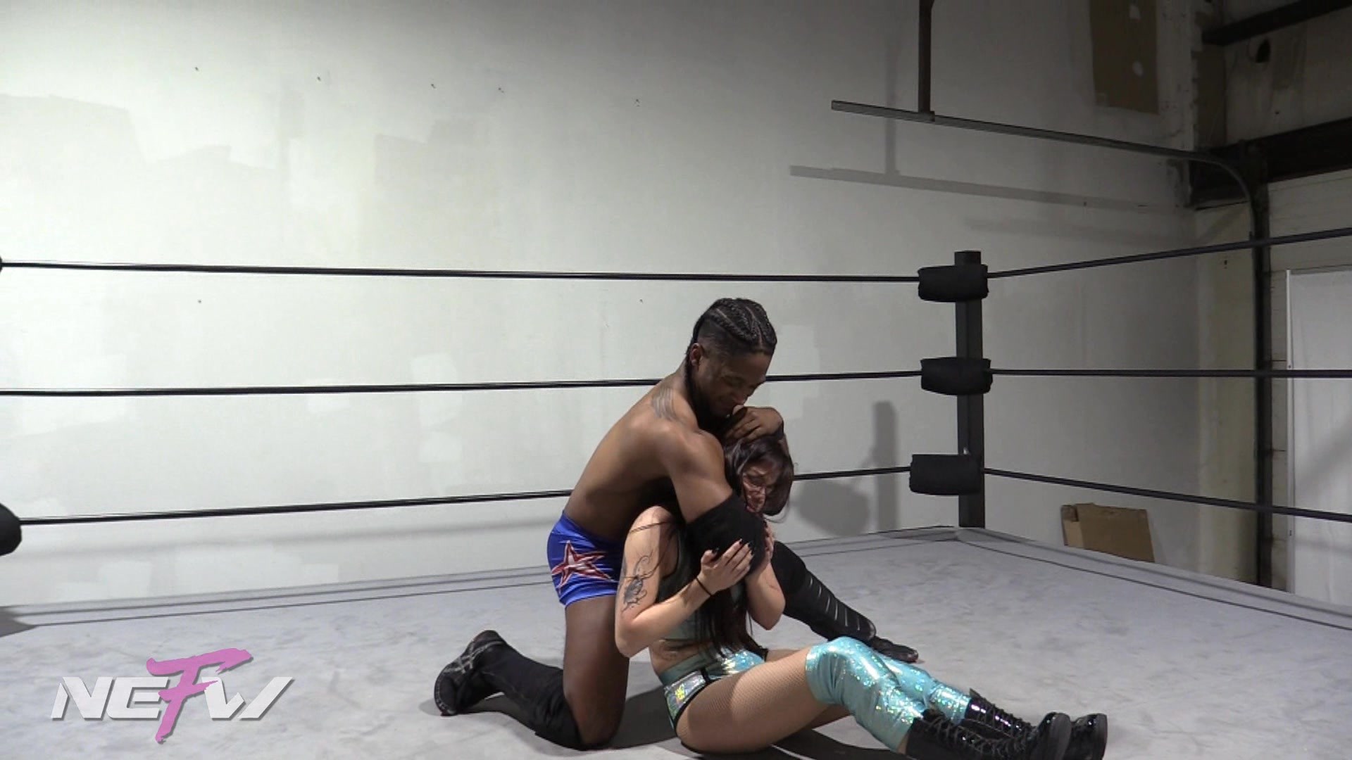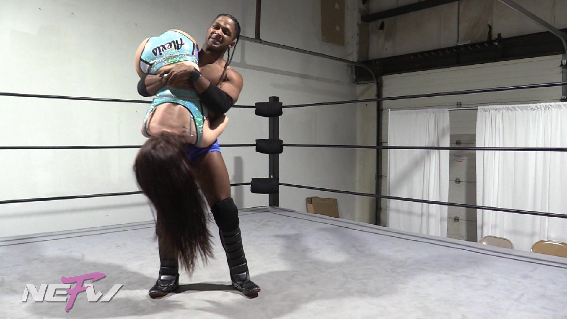Kaitland Alexis is in the ring, excited to be back at NEFW but has heard that she has a bounty on her head, and doesn't know why! As Kaitland is in the ring pacing back and forth, a male wrestler attacks her from behind! The male delivers a beatdown to Alexis, knocking her out and giving her various lift & carry holds around the ring. In the end, he finishes her with a Pile Driver, and a pin.