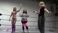 Ray Lyn, and ref Allie, is in the ring waiting for her opponent Laynie who is late for their match. And when Laynie does show up finally she is not only late, but she is in sweats and not even in her ring gear. Ray is being belligerent so Laynie hits her with a superkick to KO her so that she can go put on her ring gear. Laynie comes back in the ring and dominates Ray with moves like ddt, stinkface, pedigree, full nelson, sleeper, superkick, figure four head scissor, all while picking up more pinfalls on Ray along the way.