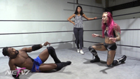 Here we have another intergender match as Adena Steele takes on Anthony Bennett, with special referee Mila Moore. Whoever scores the most pinfalls wins, with all pins being 10 counts instead of the normal 3. Anthony tries to sneak in a quick one right at the start of the match with a fast right hand, but Adena kicks out at 9. Adena then strikes right back with a pedigree picking up her first fall. Adena then dominates the rest of the match with superkicks, ddts, facebusters, scissors, Boston crabs and more. Adena picks up multiple KO’s and pinfalls along the way as she picks up an easy win over Anthony.