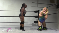 Dani Mo gets attached from behind by Luscious Latasha to start this match off. Latasha reigns down a fury of fists and boots on Dani in the corners and on the mat, and adds in some rakes to her eyes as she punishes her blonde foe. She also adds in some choking, nose rakes, fish hooks, camel clutch, otk back breaker, body slam, and more. Dani’s punishment ends with a camel clutch on the outside of the ring that causes Dani to pass out from the pain.