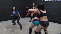 Renee and Violet start the match and Renee quickly grabs an ankle lock. Violet gets out and grabs the head but Renee backs Justine in the corner and throws some elbows into her. Renee has the head and turns it into a camel clutch. When Renee whips Violet into the ropes they both go for a clothesline and it leads to both down! Wait for the hot tag when Rain comes in blazing with forearms and launches Santana into the buckle for some running forearms! The “Spice” in Sugar and Spice taking Santana down with an X factor, but Violet makes the save! Santana and Violet beat Rain down but when Violet holds Rain up for the super kick of a lifetime, Rain moves! Sugar and Spice Lead with double DDTs for the win!