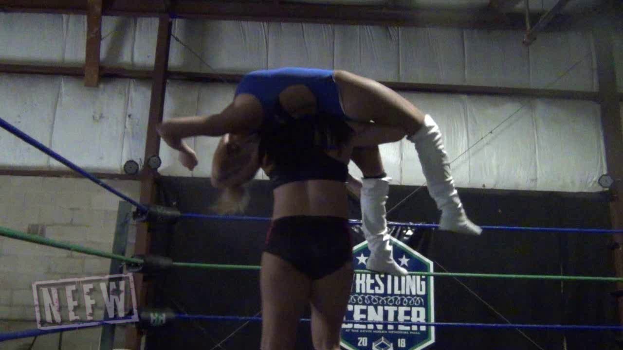 Penelope is passed out on the mat and Maria comes in to capitalize. With a three count, Maria wins, but isn’t satiated. Penelope wakes up saying she’s just had a match and in response, Maria gives her a DDT. Launching her half conscious opponent into the buckle, Maria throws face washes at Penelope’s face. Not being able to get up, Maria rag dolls Penelope, stepping on her sweet face. Barely managing, Penelope can’t fight out of the tree of woe, getting boots in her stomach. Maria is enjoying this a little too much, even feeling a little guilty that Penelope “wasn’t prepared”. Getting choked on multiple ropes with no referee to break it up definitely inspires the creative side of Maria to take liberties with Penelope otherwise forbidden. Penelope tries to get her bearings but is picked up in a torture rack. Although Penelope didn’t do anything wrong, Maria will keep due diligence on her scheduled time to deliver a beating. Click to see the dominance of Maria Manic.