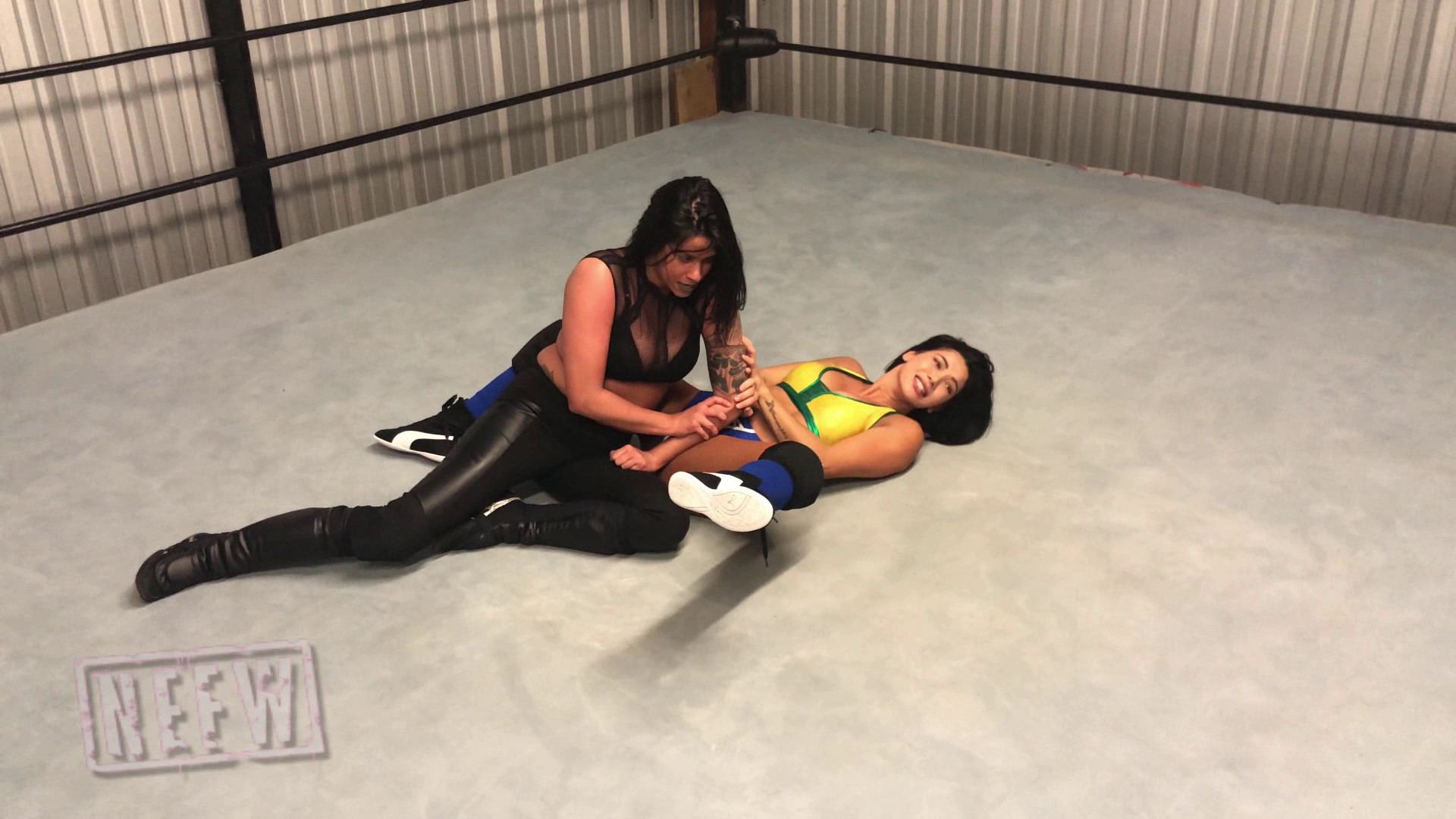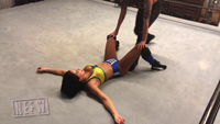 Amanda destroys Gabi in a one sided low blow beatdown. Gabi suffers through non-stop low blows from Amanda including uppercuts, punches, kicks, stomps as well as atomic drops, and grinding her elbow below the belt. Amanda also humiliates Gabi by grabbing and pulling on her trunks and occasionally slapping her ass, making things even worse for Gabi. A final trunk-pulling DDT puts Gabi down for good, and puts an end to this squash match.