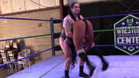 This match sees another exciting debut as promising new-comer Alyx Sky looks to solidify a position on the NEFW roster and make an impact by taking on NEFW mainstay Maria Manic. Alyx makes a rookie mistake right at the beginning of the match by trusting Maria with a handshake to start things off. Needless to say, that doesn’t work out well for the rookie and is just the beginning of the end for her. Maria wastes no time as she nails Alyx with a piledriver, immediately weakening and disorienting her. The rest of the match is a squash with Maria using suplexes, body slams, bearhugs, camel clutch, and more, before finishing her off with another piledriver and victory posing over her defeated rookie victim.