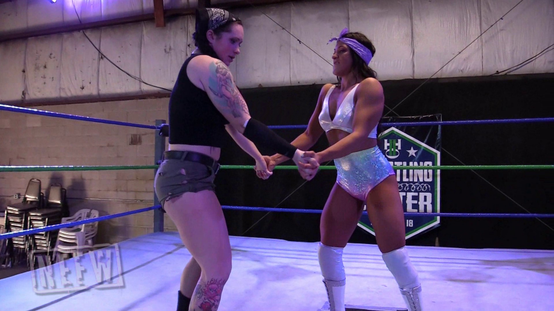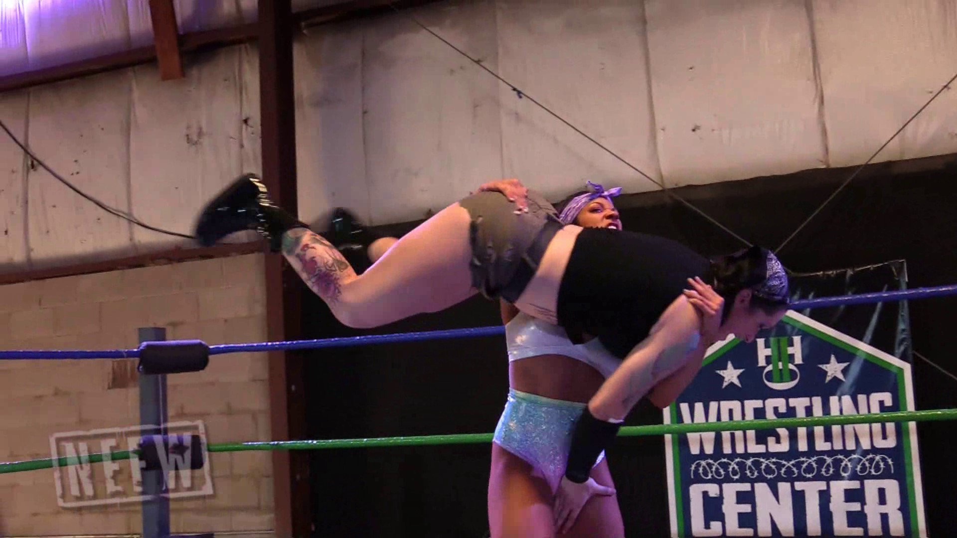 On paper anyone going up against Maria Manic in a bodyslam match would look like a heavy underdog. However Alyx Sky, with her fitness and body building background, is more than capable of lifting and slamming Maria as she shows by taking an early 2-0 lead in the best of 5 slams match. Maria uses her experience advantage to roll out of the ring to recover, and Alyx makes the rookie mistake of following her outside the ring. Maria is able to turn the tides on the outside and continues working Alyx over in the ring, allowing her to tie up the match 2-2. Who will deliver the final slam and pick up the victory?